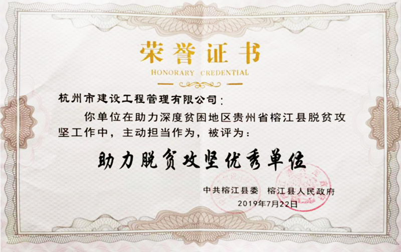 2019年助力深度貧困地區貴州省榕江縣脫貧攻堅工作助力脫貧攻堅優秀單位